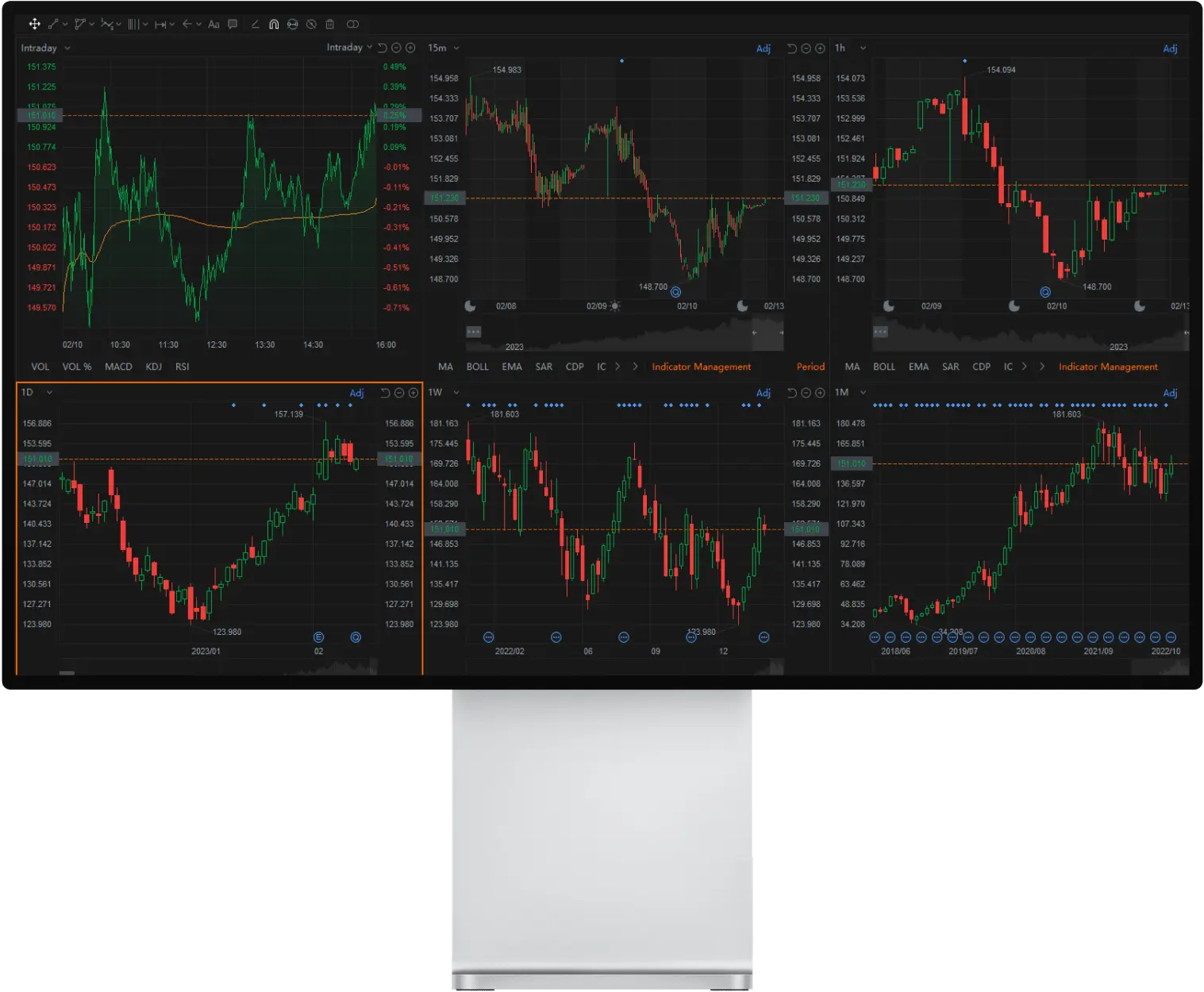 Simultaneously monitor multiple stocks, in multiple time frames, with multiple screeners, using real-time data that refreshes every 0.03 seconds.