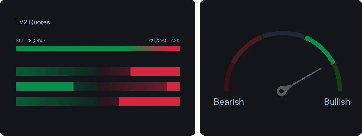 Gain insights into price action by unlocking our free level 2 data that has up to 60 levels of bids and asks.